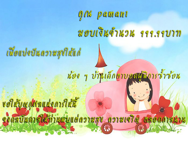 บ้านนี้มีเด็กอยู่ประมาณเจ็ดสิบคน เดือนหนึ่งคงต้องมีรายจ่ายกันพอสมควรน่าจะได้รับความช่วยเหลือคนละเล็กคนละน้อยจากพวกเรา
