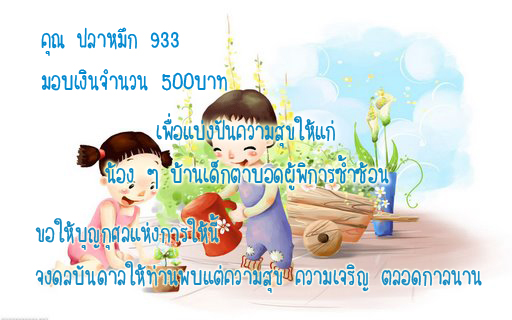 มีอีกรายเจ้าค่ะ น้องผิง ของคุณปลาหมึก 933 เจ้าค่ะ จำนวนเงิน 500.00 บาท