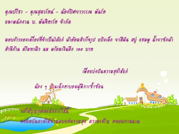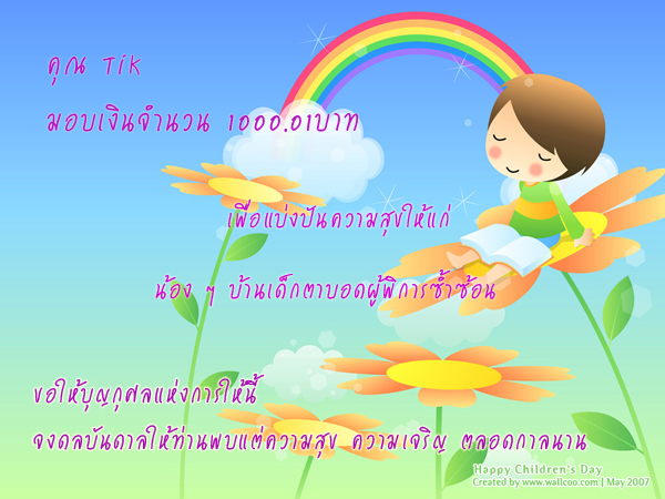 ขอบคุณเพื่อนๆทุกท่านครับที่มีจิตกุศลร่วมบริจาคให้เด็กผู้ด้อยโอกาสในครั้งนี้