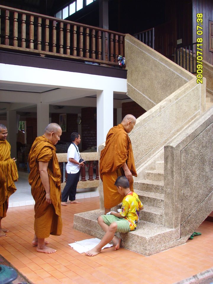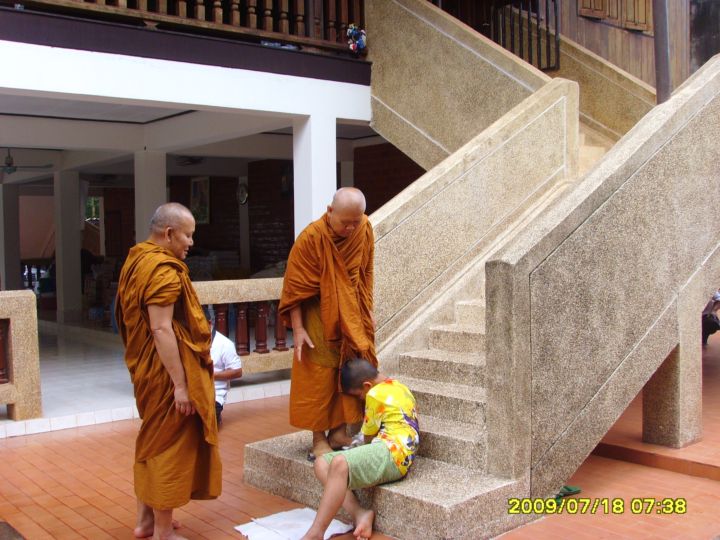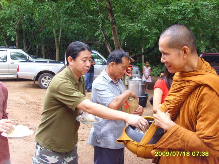เสื้อสีเขียวนี่เพื่อนผมเอง...นอกจากพ่อแม่แล้วผมถือว่าเพื่อนผมคนนี้เป็นคนที่สำคัญมากในชีวิต...เพราะผมได้บวชเพราะมันๆ ช่วยผมทุกอย่างทั้งการเงินและด้านจิตใจ...ผมยังจำได้ดีถึงมิตรภาพที่เกิดขึ้นในตอนสายวันหนึ่ง...บนถนนสีลม มันเดินมายืมสไลด์ผม!... เพราะมันมาถ่ายงานไม่ทันม้นบอกว่าชื่อ"เล็ก" จาก"ผู้หญิงวันนี้"ผมจึงบอกไปว่าได้เดี๋ยวส่งไอคิวก่อนแล้วจะแบ่งไปแล้วให้แมซเซนเจอร์ไปส่งให้ที่เอกมัย.....นั่นเป็นจุเริ่มต้นของคำว่ามิตรภาพจากวันนั้นถึงวันนี้อะไรหลายอย่างผ่านมาในชีวิตผม จนสุดท้ายผมได้"หลักใจ" และนี่คือสิ่งที่ผมอยากตอบแทนเพื่อนคือพามาวัดมากราบไหว้ครูบาอาจารย์...