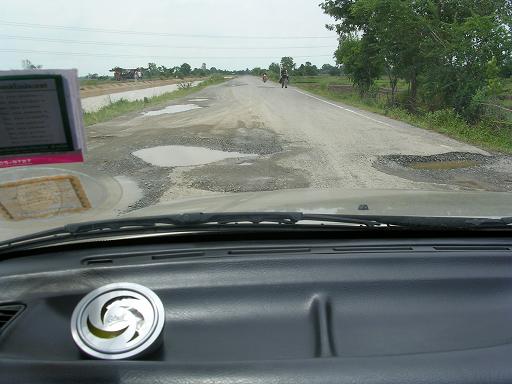ถนนทางเข้าวัดเป็นหลุมบ่อเกือบตลอดสาย
