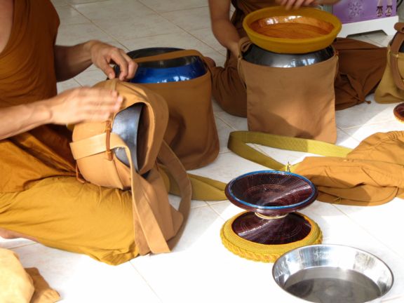 ที่เห็นอยู่นี้ หลังจากล้างบาตรแล้วก็จะมาเช็ดบาตร ตากบาตรให้แห้งเวลาตากบาตรนั้นประมาณ3-5นาทีหรือพอแห้งดีแล้วก็ใส่"ซบบาตร"หรือทางภาคกลางเรียก"สลกบาตร"แล้วแต่จะเรียกครับไม่ผิด แต่ถ้าทิ้งบาตรตากแดดไว้นานจนแดดแรงและบาตรร้อนนั้นเป็นอาบัติปาจิตตี นี้เป็นข้อวัตรอีกอย่างที่พ่อแม่ครูอาจารย์ท่านพาทำ จะเหมือนกันทุกวัดครับ(สายหลวงปู่มั่น)(ธ)