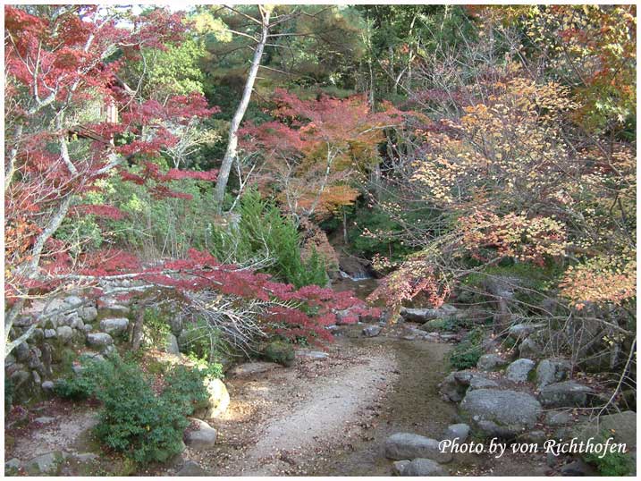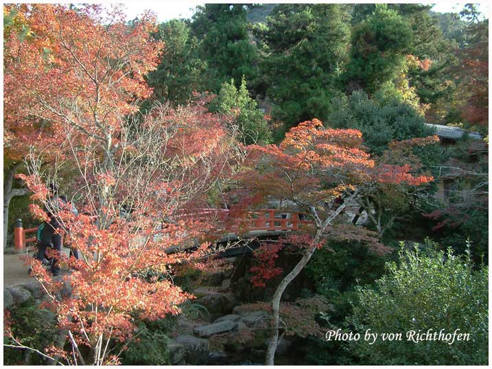 สถาปัตยกรรมที่เห็นทั้งหมดตั้งแต่ท่าน้ำจนถึงเจดีย์นี่สร้างโดยโชกุนมิโยโมริเมื่อแปดร้อยกว่าปีก่อน ประตูกลางน้ำก็สร้างในสมัยนั้นด้วย