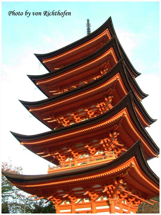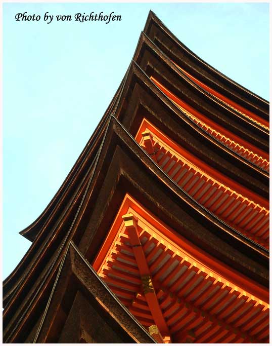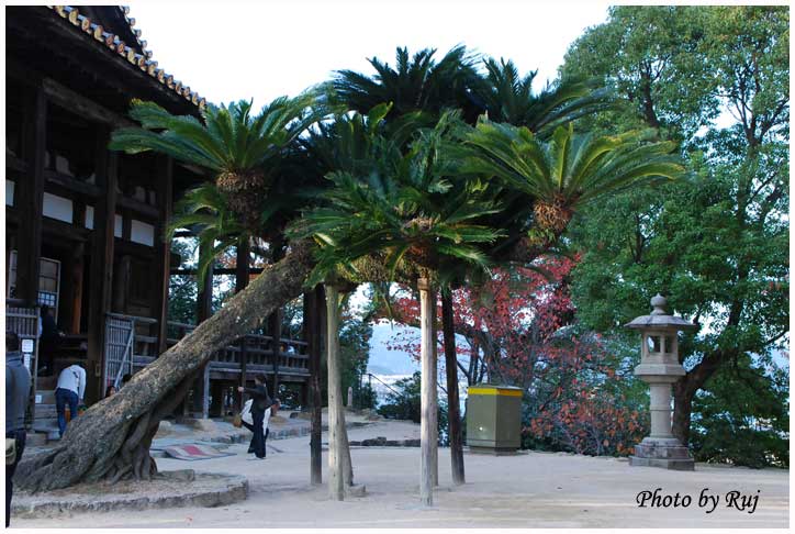 เมื่อปี 2004 ซูเปอร์ไต้ฝุ่นนีน่าได้ชึ้นมาถล่มฮิโรชิม่าลมแรงระดับสองร้อยกว่ากิโลเมตรต่อชั่วโมงทำลายวัดไปส่วนหนึ่งแต่ก็ซ่อมแซมกันไปจนสมบูรณ์อย่างที่เห็นในรูป