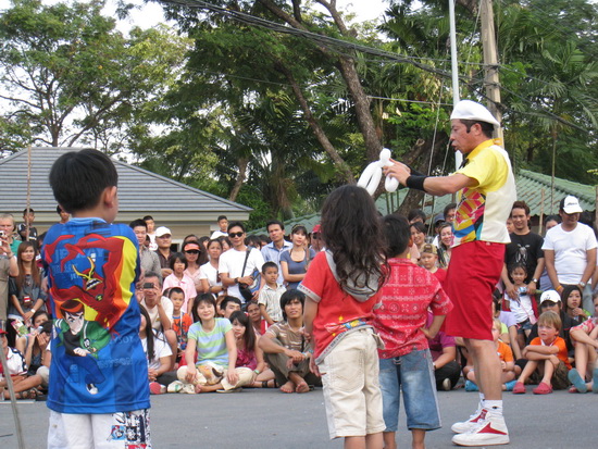 เมื่อเด็ก ๆ ร่วมแสดง ก็จะได้ลูกโป่งเป็นของขวัญ...