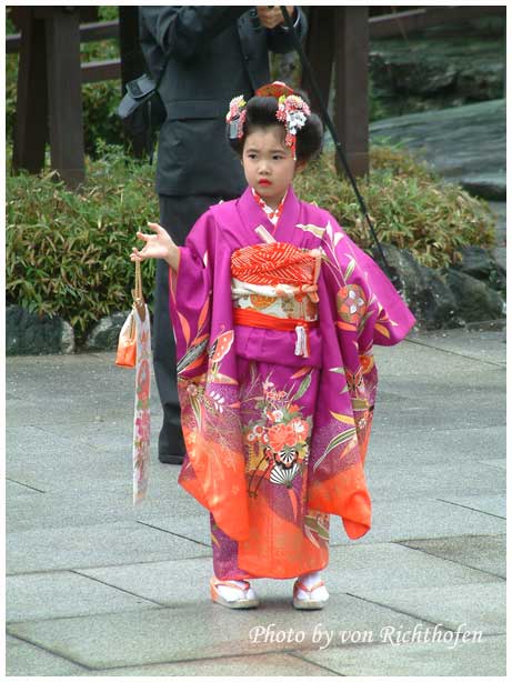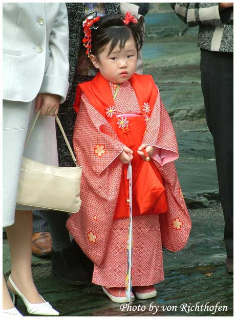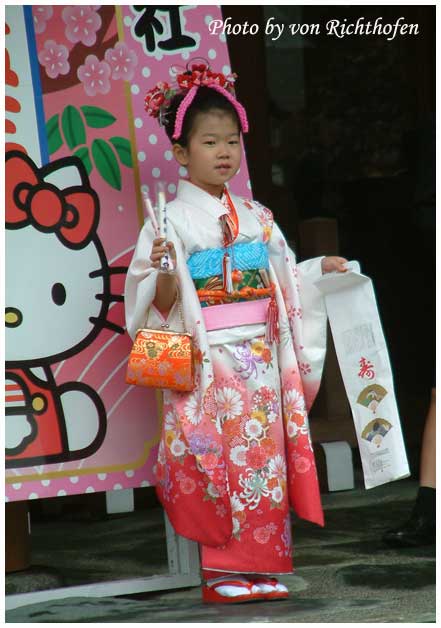 เด็กญี่ปุ่นจะใส่กิโมโนครั้งแรกก็วันนี้แหละ เป็นวันที่พ่อแม่เด็กจะเรียกชื่อเด็กตามหลังด้วยซังหรือโกะทำให้เด็กรู้สึกตัวว่าไม่ใช่เป็นเบบี้แล้ว