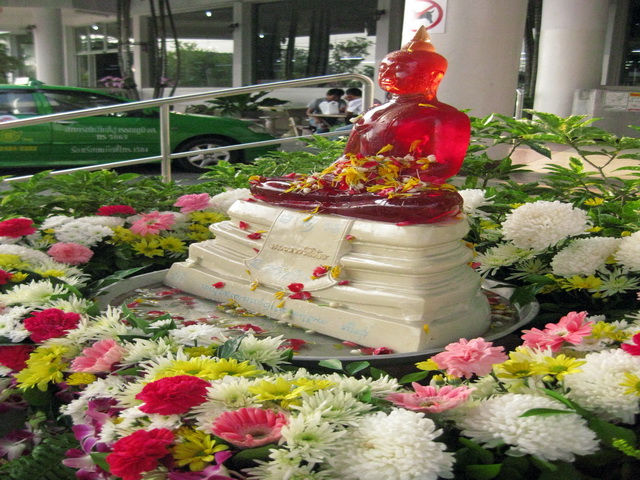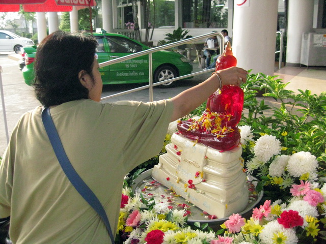 แม่บ้านกำลังสรงน้ำพระที่โรงงานวุ้นเส้นเขาจัดไว้