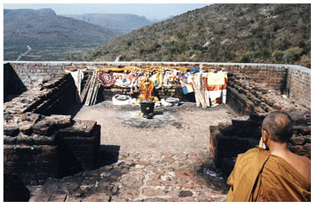 ในรูปเป็นเมืองราชคฤห์ ซากพระคันธกุฎีของพระพุทธเจ้า บนเขา