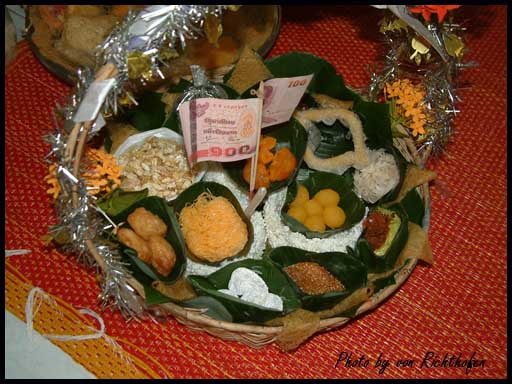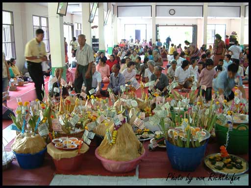 อาหารแห้ง ด้าย เข็ม สำหรับใส่ในหมฺรับ คล้ายๆทำสังฆทานในภาคกลาง