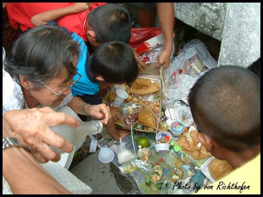 "ชิงเปรต" อันเป็นที่มาของเด็กๆที่จะเข้ามาแย่งกันหาเงินที่ใส่ในสำรับเปรต