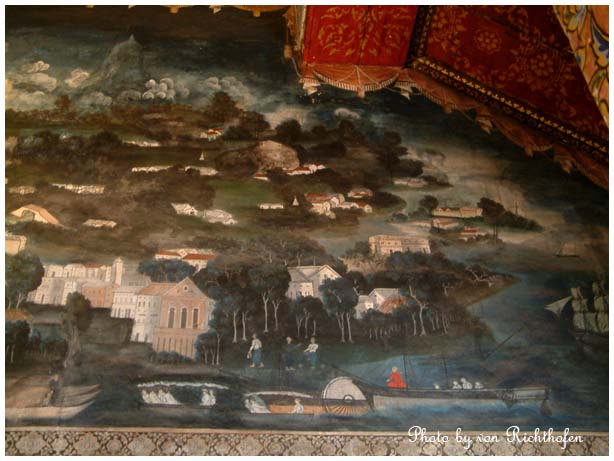ผมพบภาพวาดผนังโบสถ์หาดูยากชุดนี้จากที่วันหนึ่งผมกับรุจไปเที่ยวเมืองเพชรซึ่งตรงกับวันพระใหญ่พอดี เลยหาวัดเวียนเทียนซึ่งไปพบวัดนี้เข้าที่เชิงทางขึ้นเขาวัง ไม่มีลำโพงเปิดเสียงแสบหู ไม่มีงานวัดให้รำคาญใจ เป้นวัดเล็กๆแต่อัดไปด้วยคุณภาพ วัดสะอาดมาก มีแต่พระสวดมนต์และเทศน์เงียบๆให้คนฟัง มีคนนั่งฟังพระสวดเงียบๆ มีการสวดตามแบบโบราณในทำนองคีตที่เพราะมาก ผมกับรุจเลยเป็นสมาชิกของวัดนี้ต้องขับรถไปฟังสวดทุกวันพระใหญ่ปีละสามสี่ครั้งไปโดยปริยาย