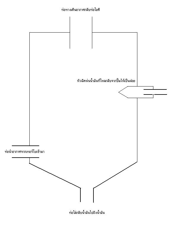 4. น้ำมันถูกอัดจากแรงลม turbo ฉีดฝอย เข้าทางไอดี (หรือใช้แรงดูดจาก turbo หว่า!!! ยิ่งคิดยิ่งงง)