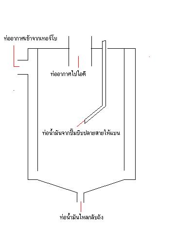 งั้นได้มาทั้งหมดแล้ว ผมลองออกแบบใหม่ดูครับหลังจากกลับจากทะเลแล้ว เป็นผมจะสร้างถัง Vapour ให้มีผนังสองชั้น โดยชั้นแรกให้ลมที่มาจาก เทอร์โบไหลเวียนเข้ามา(น่าจะพาความร้อนมาบ้างครับ)โดยถ้าทำเป็นลมวนได้น่าจะดีครับ แล้วให้จุดที่จ่ายลมอยู่ด้านล่างเพื่อพัดพาเอาลมขึ้นไปตีกับ น้ำมันที่จ่ายมาโดยบีบปลายท่อไว้ซึ่งน่าจะทำให้เป็นเป็นฝอยได้เมื่อแรงดันมากพอครับ ส่วนด้านล่าง น่าจะทำเป็นแอ่งกระทะไว้เพื่อให้น้ำมันที่ไม่ถูกพาไปกลับไปสู่ถังน้ำมันครับ
