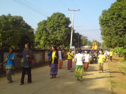 ขบวนเเห่ใกล้ถึงวัด บ. ตาทวดเเล้วครับ