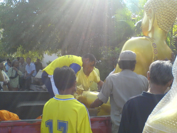 เจ้าภาพจากสุพรรณลงเเรงย้ายองค์พระด้วยตนเอง