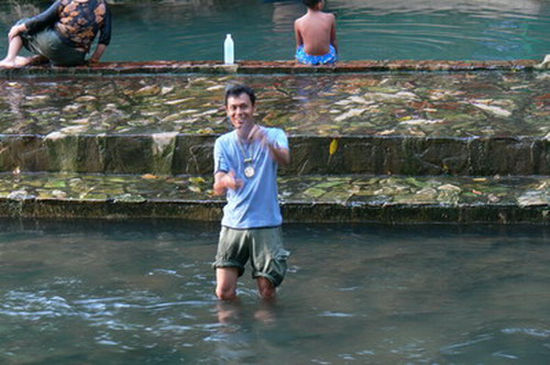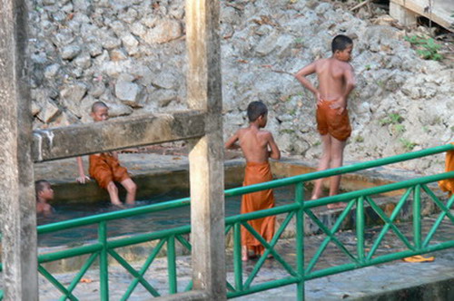 เด็กๆเล่นน้ำที่บ่อน้ำพุร้อนหินตาด
