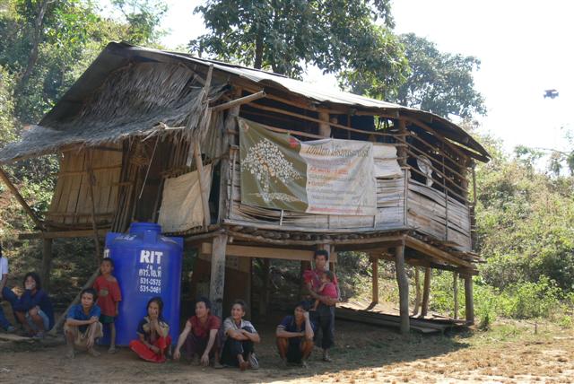นี่คือบ้านพักครูที่ค่อนข้างหรูหราไม่น้อยไม่มีไฟฟ้าไม่มี ทีวีครูบอกว่าวันแรกที่เข้ามาเห็นร้องไห้เลย ถามครูว่าอยากได้บ้านใหม่หรือเปล่าครูบอกว่าอยากได้ทางกลุ่มออฟโรดก็จะพยายามหาทุนสร้างบ้านให้ครูใหม่แต่ไม่รู้ว่าเมื่อไหร่ถึงจะได้