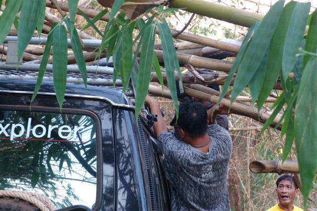 พี่หมาย กำลังสั่งให้ อาจารย์ ขโมยไผ่ขึ้นหลังคารถ