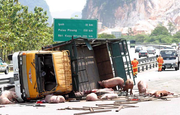 งานนี้รถพลิกคว่ำ ไม่รู้(หมู)ตายกี่ศพ