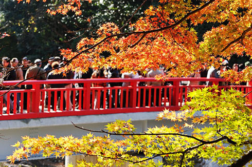...ในช่วง momijiที่ใบไม้เปลี่ยนสีมักเป็นที่นิยมพาลูกจูงหลานมานั่งเล่น