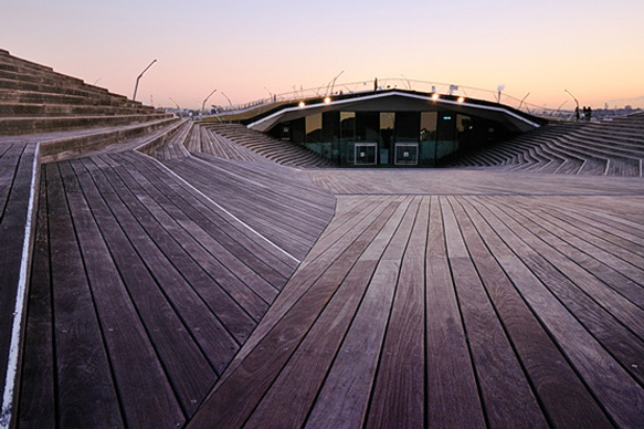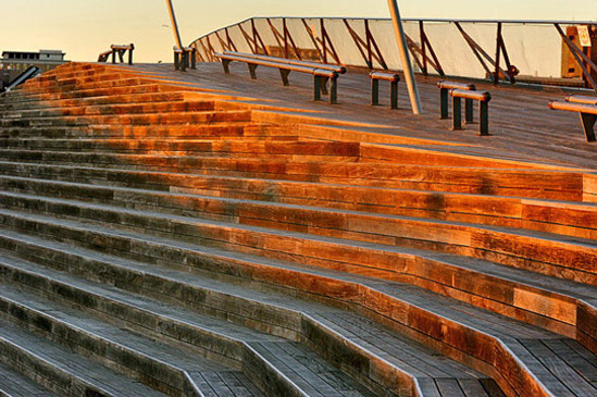 ...หนึ่งในท่าเรือที่บรรจงออกแบบ ปูด้วยแนวไม้ทอดยาวเล่นระดับ ด้านกลางไว้จัดแสดงงานต่างๆ