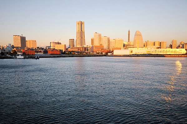 ...อากาศดีเห็นเขาฟูจีไกลๆ ส่วนตึกแดงๆ คือศุลกากรเก่า