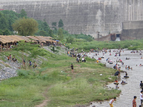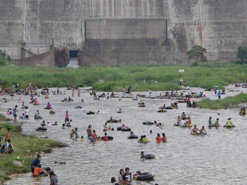 เล่นน้ำคลายร้อนถึงแม้น้ำจะน้อยก็สนุก