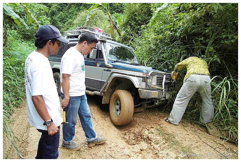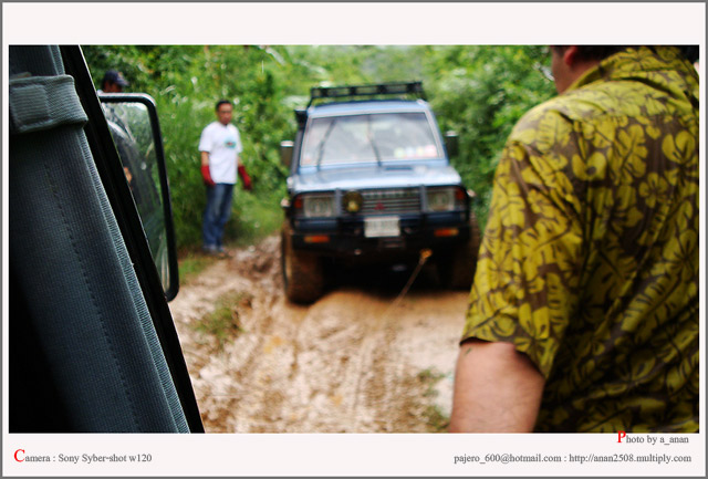 ในที่สุดก็สามารถขึ้นมาได้ โดยใช้ปาเจโร่ สองคัน ดึงรถผมดันเดียว ด้วยความช่วยเหลือของไก่ปาหวาน และ กาก้าเพื่อนเก่าแก่ ที่มาร่วมขบวนด้วยในทริปนี้