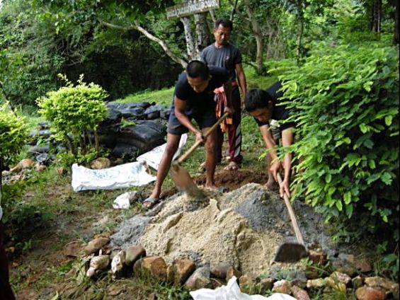 พี่ๆ ตชด.ช่วยกันผสมปูอย่างขยันขันแข็ง