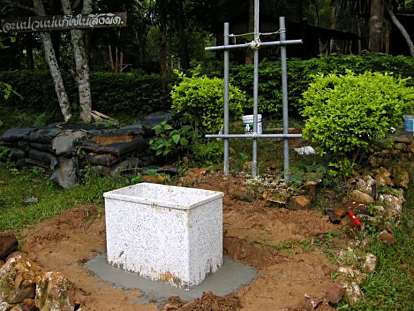 ฐานที่หล่อเสร็จแล้ว จะสังเกตุเห็นเสาธงเก่าที่อยู่ด้านหลัง ดูแล้วไม่สมศักดิ์ศรีของนักรบชายแดนที่คอยปกป้องประเทศชาติ ให้พวกเราได้อยู่อย่างร่มเย็นเป็นสุขเลยครับ