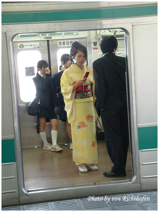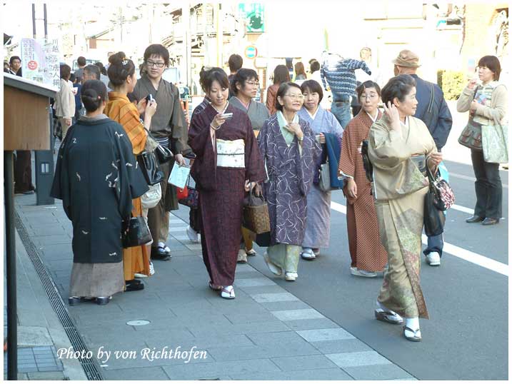 ผมสังเกตุดูนะว่าคนญี่ปุ่นมักชอบแต่งตัวแบบนี้วันหยุดมาเดินเที่ยว สาวๆถ้าวันไหนไม่แต่งแบบเปรี้ยวไปเลยก็แต่งแบบนี้ออกมาเที่ยว บ้านเราใครนุ่งผ้าซิ่นสะไบผ้าทอมือแบบงานบุญทางเหนือทางอีสานมามาเดินเที่ยวคงโดนมองเป็นพนักงานโรงแรมไป