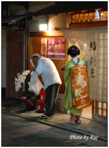 พอดึกขึ้นมาซอยเงียบๆก็เปลี่ยนไป แสงสีและความคึกคักเข้ามาแทนที่ รถราเริ่มเข้ามาส่งแขกกระเป๋าหนักที่เข้ามาเที่ยวร้านที่มีเกอิชาบริการ แบบนี้ไม่ผิดหวังแน่ได้ส่องเธอแน่นอนคืนนี้
