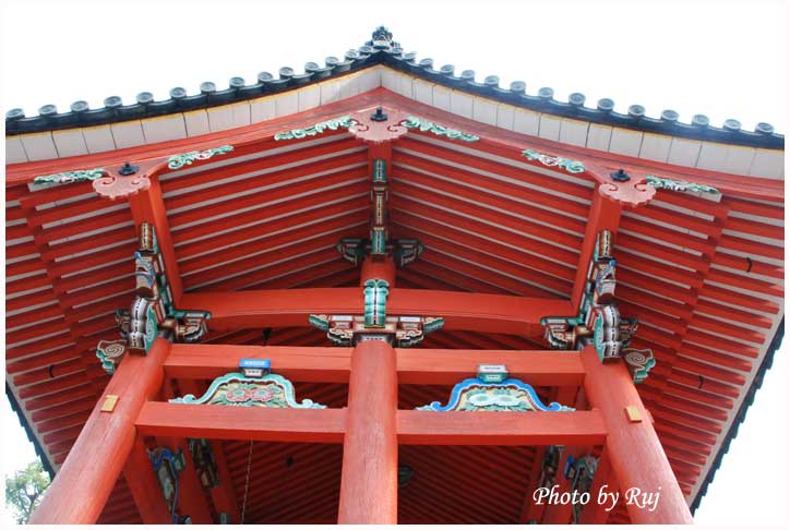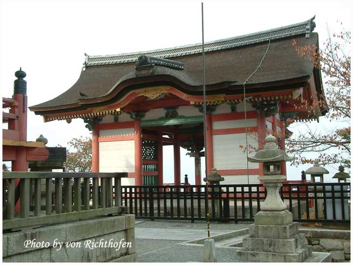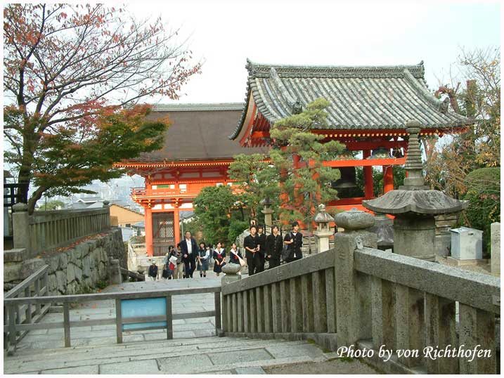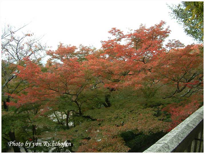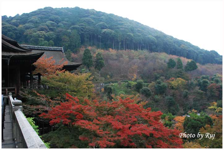 ระหว่างระเบียงทางเดินข้างวิหารเราก็ได้มองเห็นทิวไม้ใบสีแดงลึกลงไปในหุบเขา วูบแรกที่เห็นภาพก็เข้าใจว่าทำไมที่นี่ถึงยอมรับจากคนญี่ปุ่นว่าเป็นวิวที่ดีที่หนึ่งในฤดูใบไม้ร่วง
