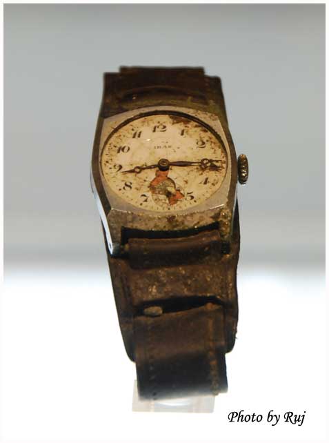 นี่คือรูปนาฬิกาข้อมือที่หยุดเดินในเวลาที่โดนแรงกระแทกจากระเบิด ผู้ใส่นาฬิกาเรือนนี้อยู่ห่างจากศูนย์กลางการระเบิดไม่ถึงสองกิโลเมตรระยะไม่ต่างกับที่ครอบครัวของซาดาโกะอาศัยอยู่ เห็นภาพได้ว่าทำไมแม่ของซาดาโกะต้องหอบลูกสองคนลงไปหนีความร้อนในแม่น้ำหลังจากระเบิดเผาเมืองไปแล้ว