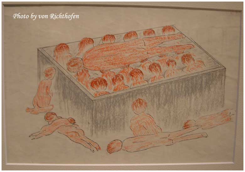 นิทัศน์การนี้น่าสนใจครับ เป็นภาพเขียนที่ชาวบ้านประสพกับเคราะห์กรรมในครั้งนั้นเขียนขึ้นมาตามที่ตัวเองเห็น