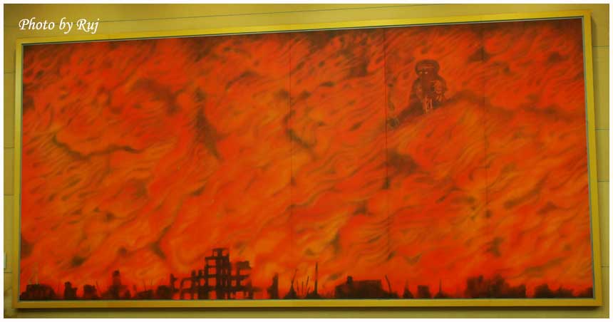 ภาพนี้เป็นภาพลงในเซรามิกขนาดใหญ่เต็มฝาผนังโดยอาจารย์อิคูโอะ ฮิรายาม่า ภาพของจริงแสดงในหอศิลป์ฮิโรชิม่า วันนั้นอาจารย์อิคูโอะได้ทำงานที่ศูนย์อพยบนักเรียนที่คลังอาวุธเมืองฮิโรชิม่าและได้ค้นหาผู้รอดชีวิตหลังการระเบิดที่ระแวกภูเขาโอกอนซานและได้เห็นในอากาศเต็มไปด้วยเปลวไฟนานหลายชั่วโมง