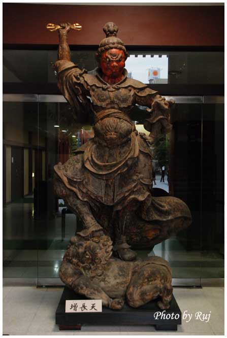 ก่อนกลับแวะไปไหว้พระบรมสารีริกธาตุที่เจดีย์ก่อน เจอกับจาตุโลกบาลไม้แกะสวยมากสององค์ สร้างมาตั้งแต่สมัยเอโดะเมื่อสามร้อยกว่าปีที่แล้ว ทั้งสี่องค์ที่สร้างไว้รักษาวัดและเจดีย์รอดจากระเบิดได้แบบน่าอัศจรรย์