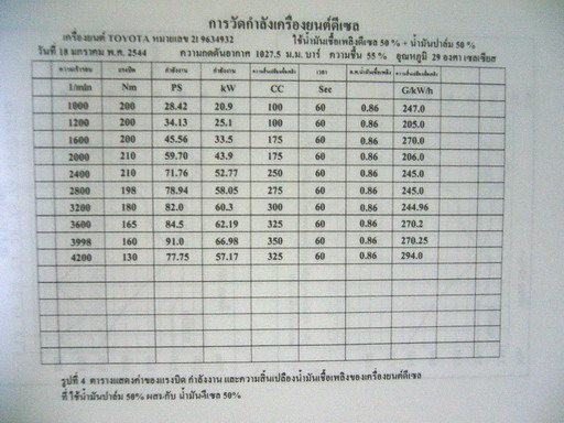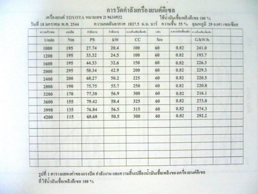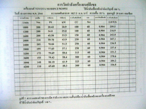 ข้อมูลมีผลการทดลองทั้งวัดแรงม้าแรงบิดตลอดจนอัตราการกินน้ำมันและไอเสีย