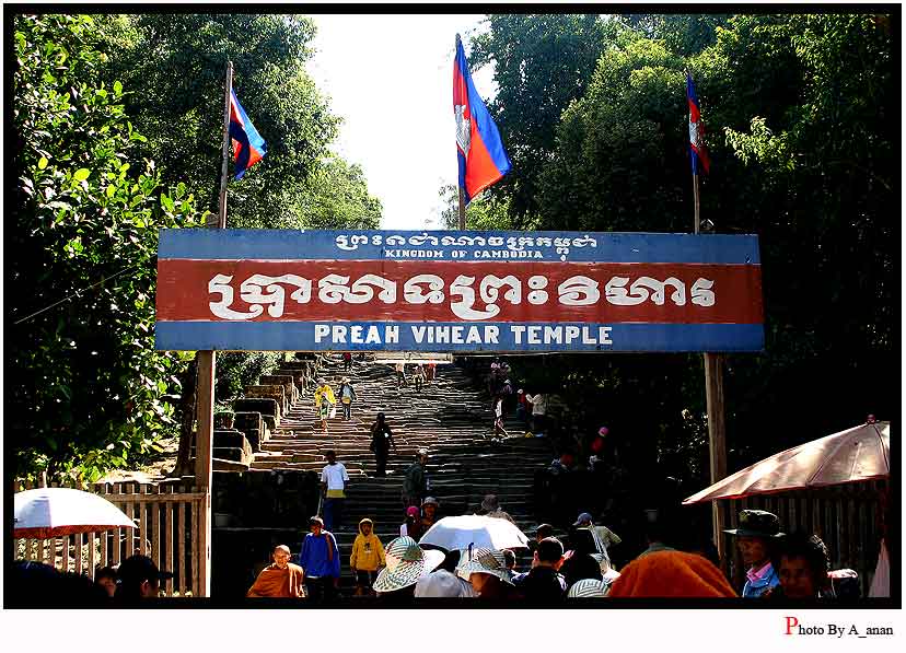 จ่ายค่าผ่านทางที่แดนกัมพูชา แล้วผ่านด่าน ขึ้นเขาพระวิหาร หรือ เปรี้ยะวิเฮียร์ ในภาษาเขมร