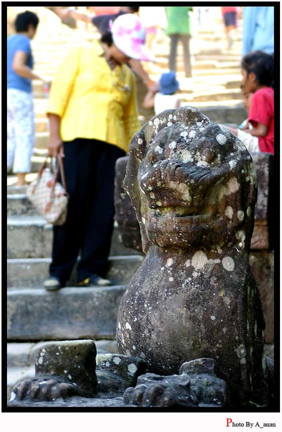 สิงห์ เฝ้าทางขึ้นเขาพระวิหาร ดูท่าทางคงเหนื่อยมาก เฝ้ามาหลายร้อยปี