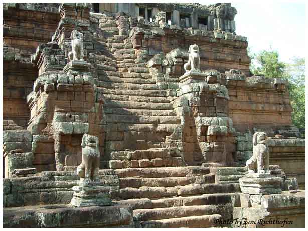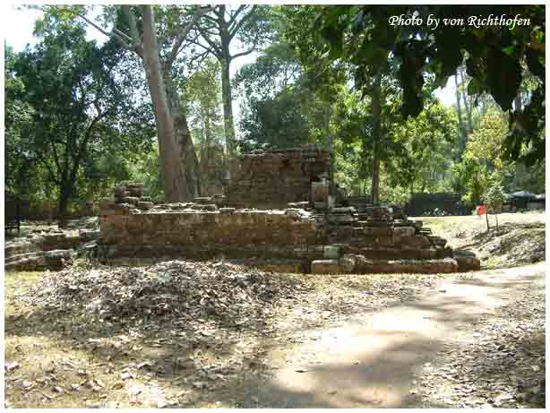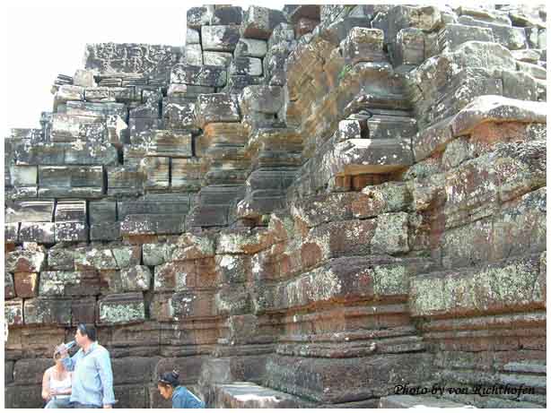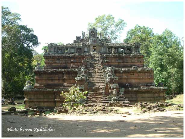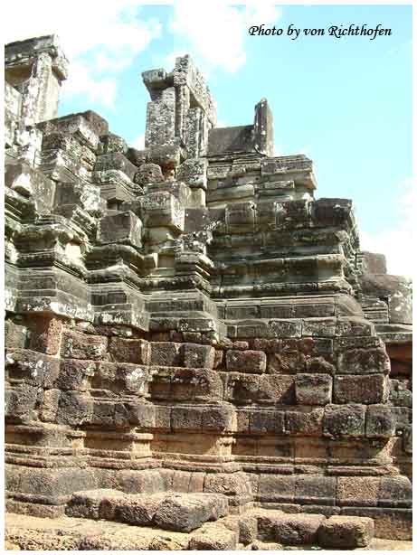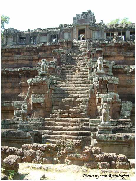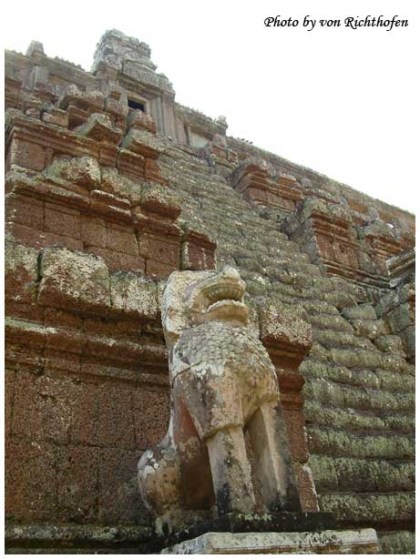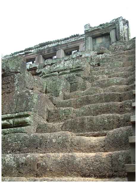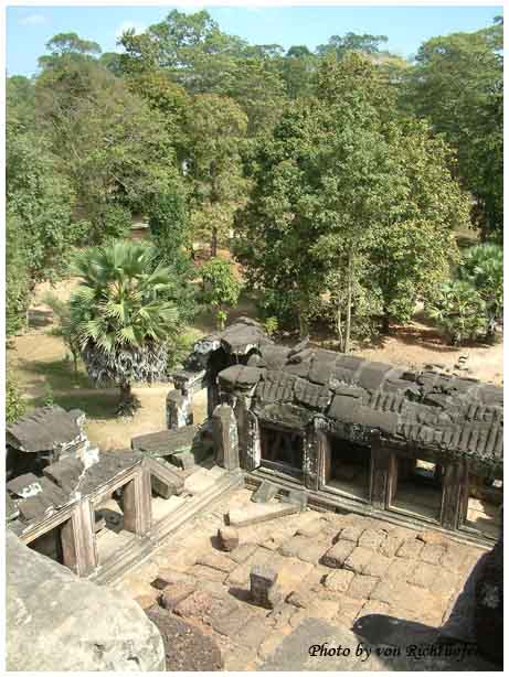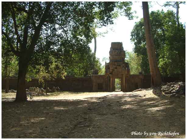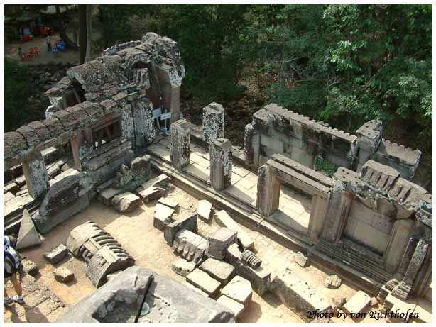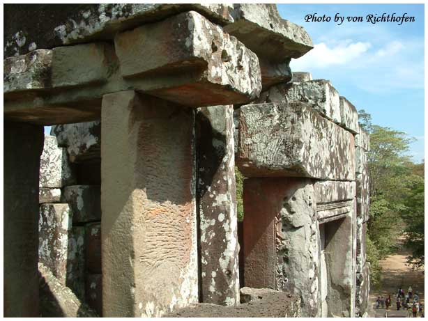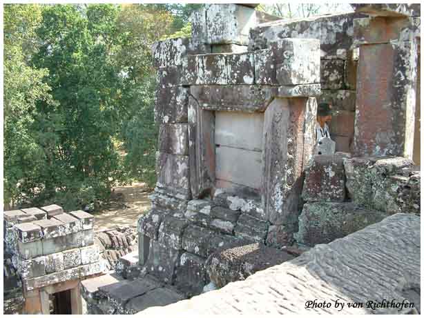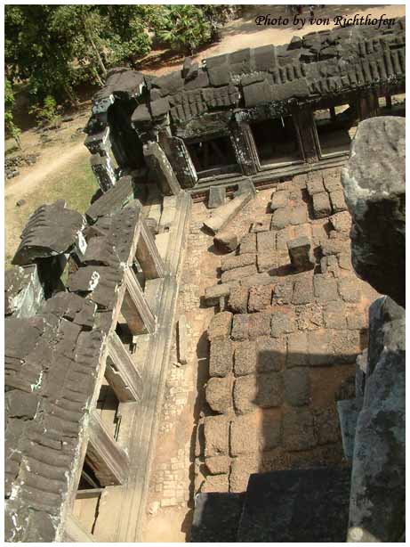 แล้วเราก็ขึ้นมาถึงระเบียงชั้นสองจนได้ ผมมีความรู้สึกว่าที่นี่คือต้นแบบของเขาพระวิหาร ไม่ว่ารูปทรงหรือการวางแนวโครงสร้างสถาปัตย์ รูปที่เห็นคือระเบียงคตรอบตัวปราสาทชั้นสาม การวางรูปแบบนี้คือปราสาทที่เป็นเทวสถานไม่ใช่ปราสาทที่อยู่อาศัยแต่อย่าไร