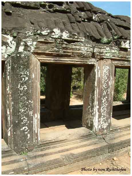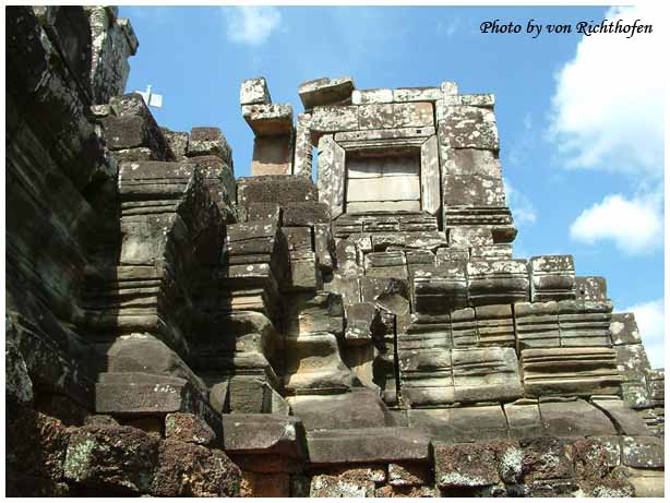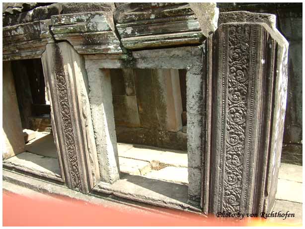 ช่องหน้าต่างห้องภายในครับ เป็นศิลปะแบบบาปวนยุคหลังลายละเอียดเบาๆบนหินหนักๆสมัยก่อนคงเป็นห้องที่สวยมาก สังเกตุไหมว่าชั้นนี้เป็นผู้หญิงแบบเต็มตัวไม่ว่าจะเป็นลายสลักและการวางรูปแบบ