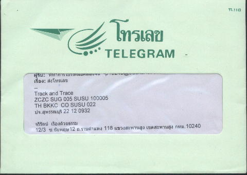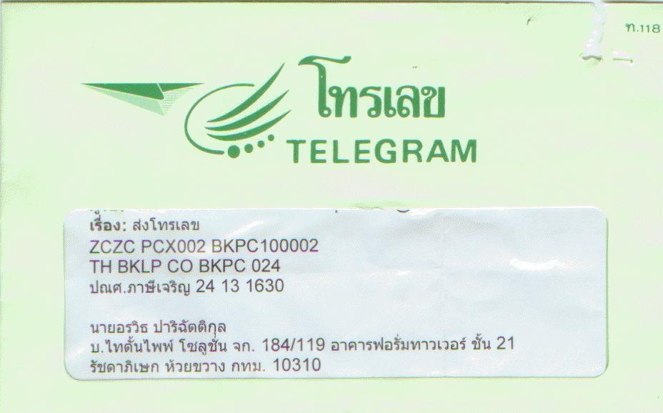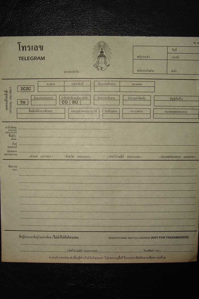 ต้องกลับมาส่งที่คลองจั่น (ลืมดูไปว่าตัวเองก็ได้รับจากคลองจั่นเหมือนกัน) ได้รับความกรุณาจาก หัวหน้าพิทักษ์ แจ้งว่าสัญญาณไม่ค่อยดีแล้ว แต่พอพี่เค้ารับรู้ว่าจะส่งเป็นที่ระลึก เลยกรุณารับเรื่องให้ว่าสัญญาณดีเมื่อไหร่จะทยอยส่งให้จะได้เป็น ฟอร์มโทรเลขตัวจริง ไม่ใช้โทรแมว ต้องขอบพระคุณมา ณ ที่นี้ด้วย
