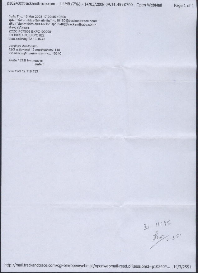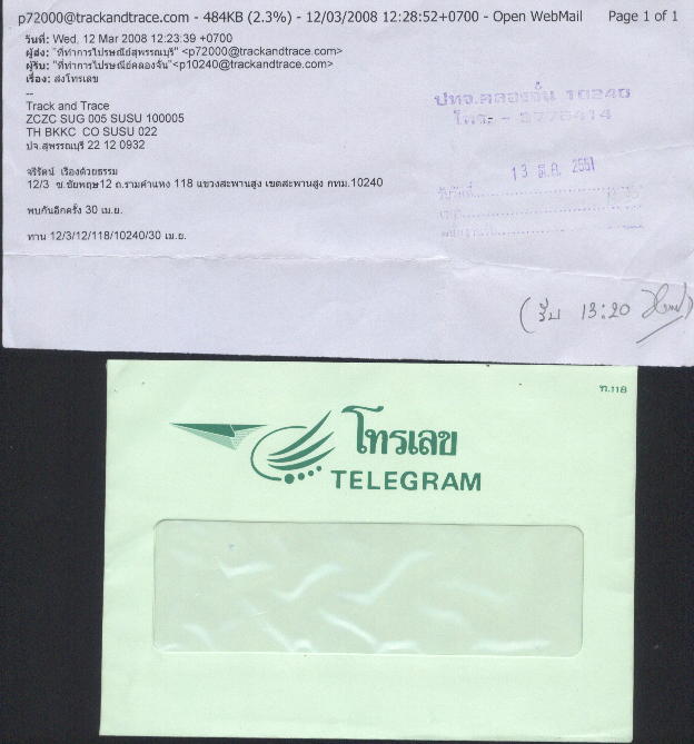 แถมได้ข้อมูลมาอีกนิดหน่อยว่า จริง ๆ มีการให้แฟกซ์ด้วยซ้ำถ้าสัญญาณไม่ดี ไม่ใช่แค่โทรแมว แบบที่ได้รับกัน ที่ให้ฟอร์มโทรแมวนี้เป็นเพราะว่ากลัวว่าจะรีบเดี๋ยวไม่ทันเลยต้องเรียกจาก e-mail ออกมาให้ก่อน (แถมกรุณาให้ดูตัวโทรเลขฉบับ จริงด้วย-แต่ไม่ยักเหมือนกับที่คิดไว้)