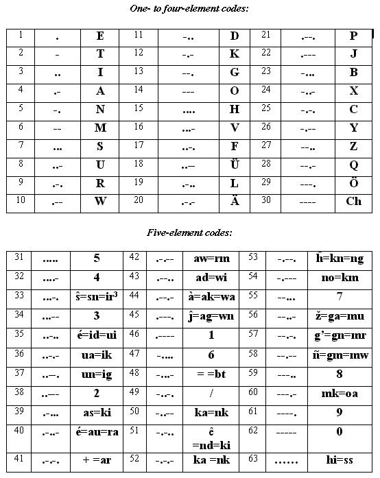ระหัสมอสอ่านออกเสียงได้สองเสียง นำระหัสเสียงสองเสียงมาวางสลับกันแล้วกำหนดออกเป็นตัวอักษร สองเสียงที่ว่าคือ