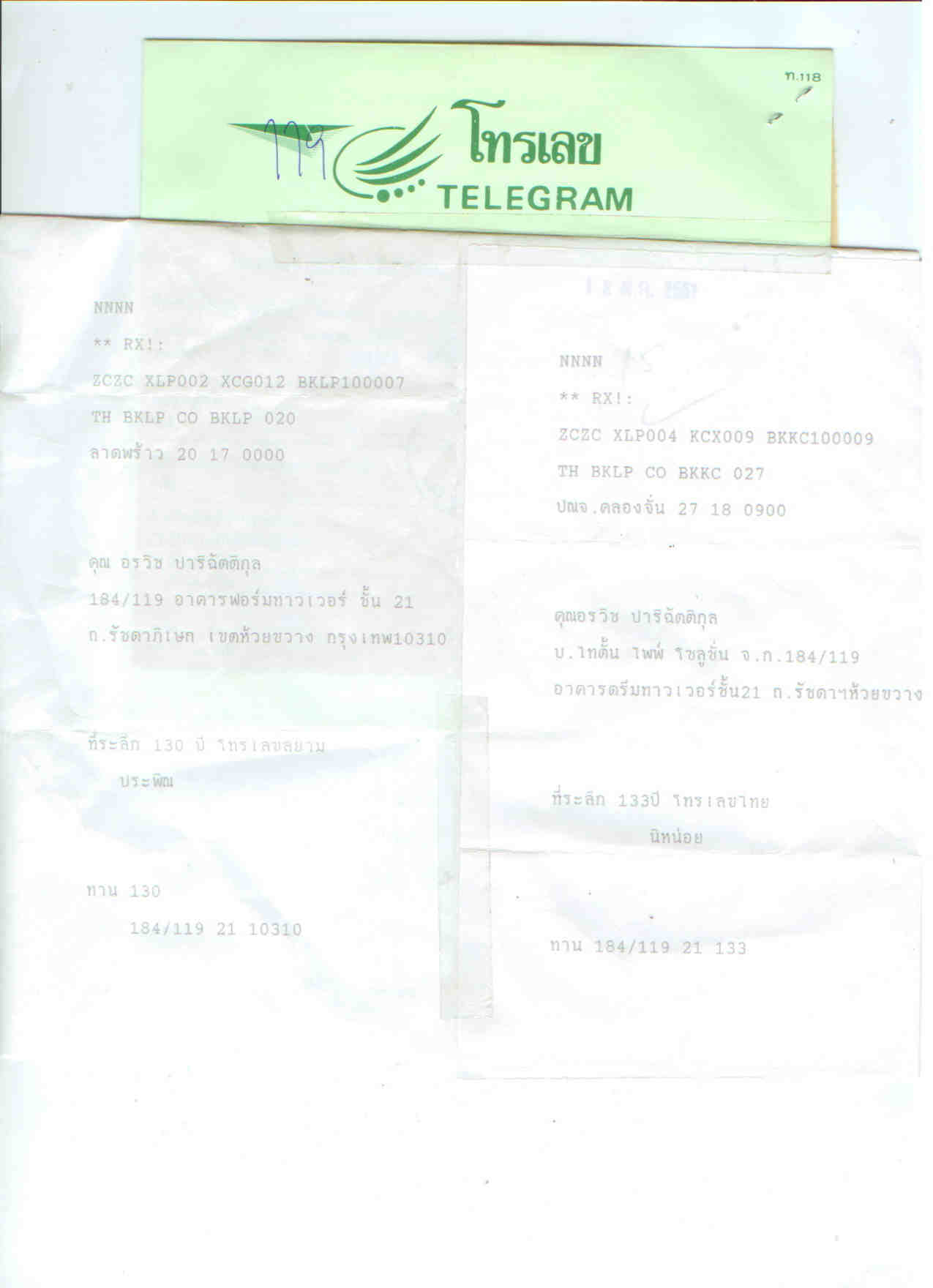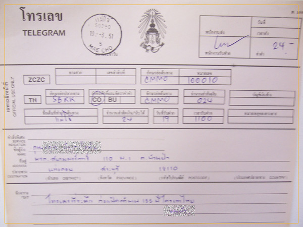 ผมได้รับโทรเลขแท้ๆเหมือนที่เคยเห็นตอนเด็กๆจากคุณติ๊กและคุณนิหน่อย