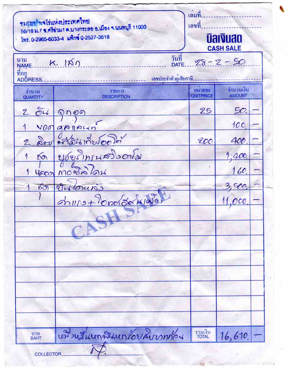 แล้วไอ้บิล "ชมรมปาเจโร่แห่งประเทศไทย" นั้นมันอะไรกันอ้างชื่อแบบนี้ชมรมเสียชื่อหมด