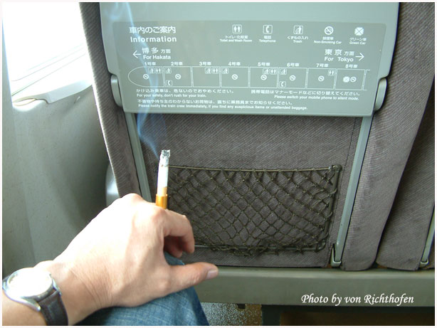 ที่นี่จัดตู้ให้คนสูบบุหรีนั่งสบายๆแยกจากที่นั่งปกติ ทุกขบวนต้องมีหนึ่งตู้ให้สูบได้