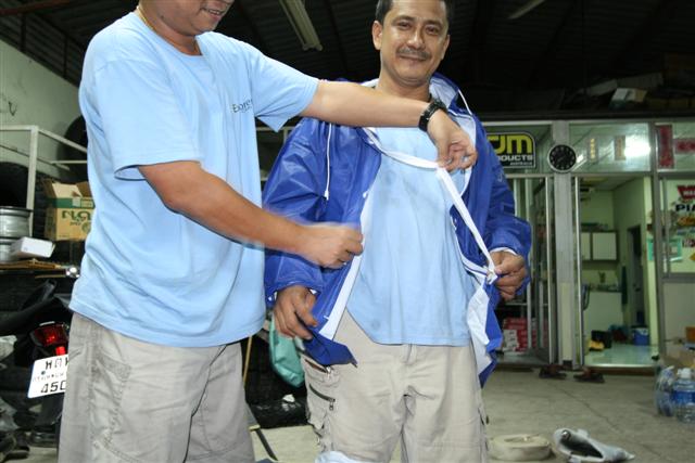 ทดสอบเสื้อกันฝนก่อนออกเดินทาง