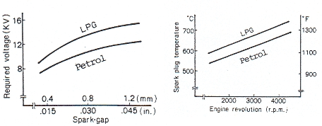 As L.P.G. has different properties to petrol it influences the spark plug operating temperature and required voltage. The extent of this influence can be seen when comparisons are made on spark plugs which were fitted in an engine using L.P.G. and petrol.